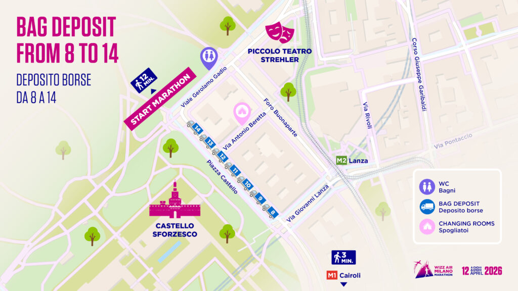 • I pettorali da 14.000 in poi potranno depositare la propria borsa al deposito borse “14”
