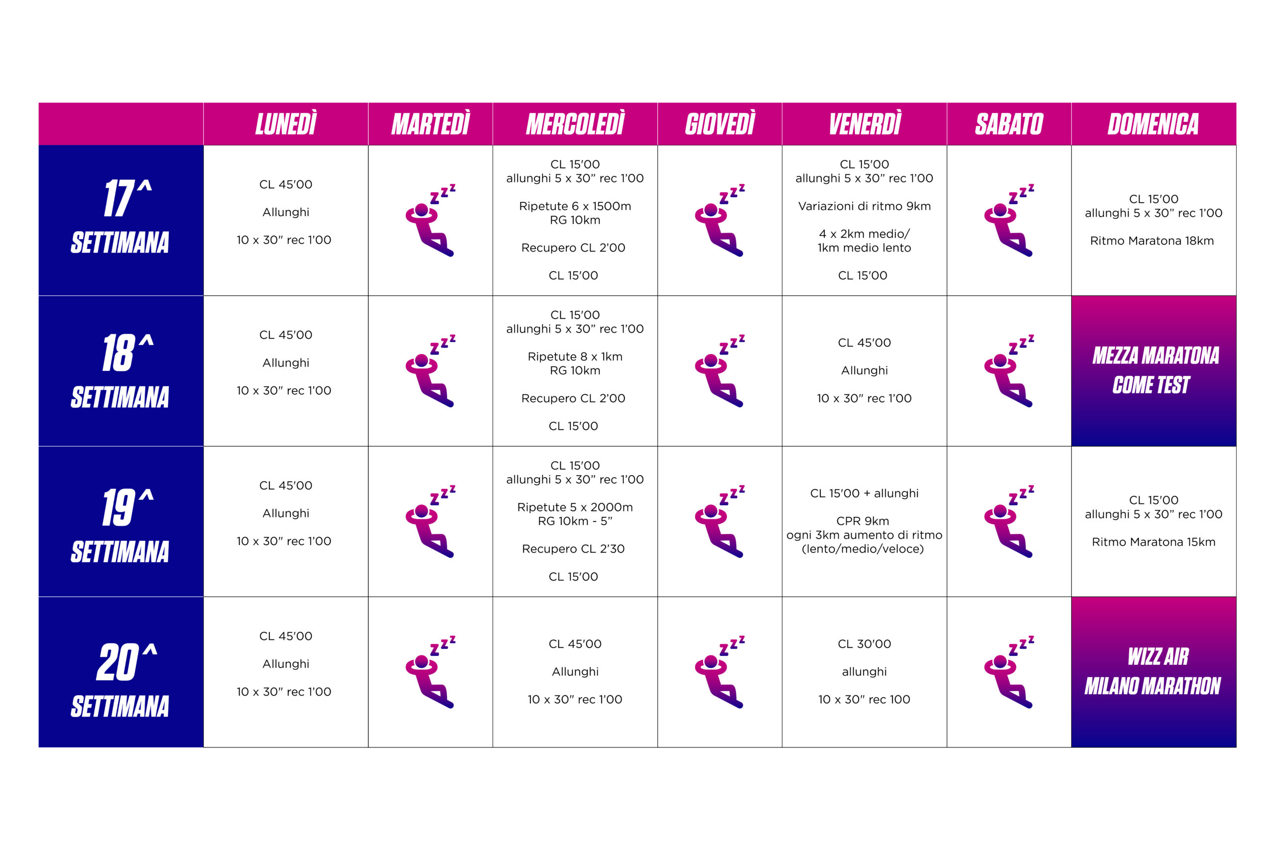 In questa pagina troverai il piano d’allenamento completo per preparati al meglio alla prossima Wizz Air Milano Marathon del 12 aprile 2026!